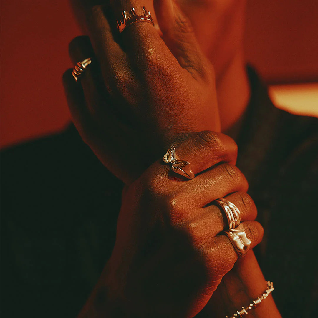 The Butterfly Ring is inspired by this Surrealist principle, taking a familiar insect and transforming it into a solid, Sterling Silver ring. Butterflies represent metamorphosis, and are significant symbols of transformation, freedom, and rebirth. The ring has an oxidised finish to highlight the details on the ring and gives an aged, vintage look.