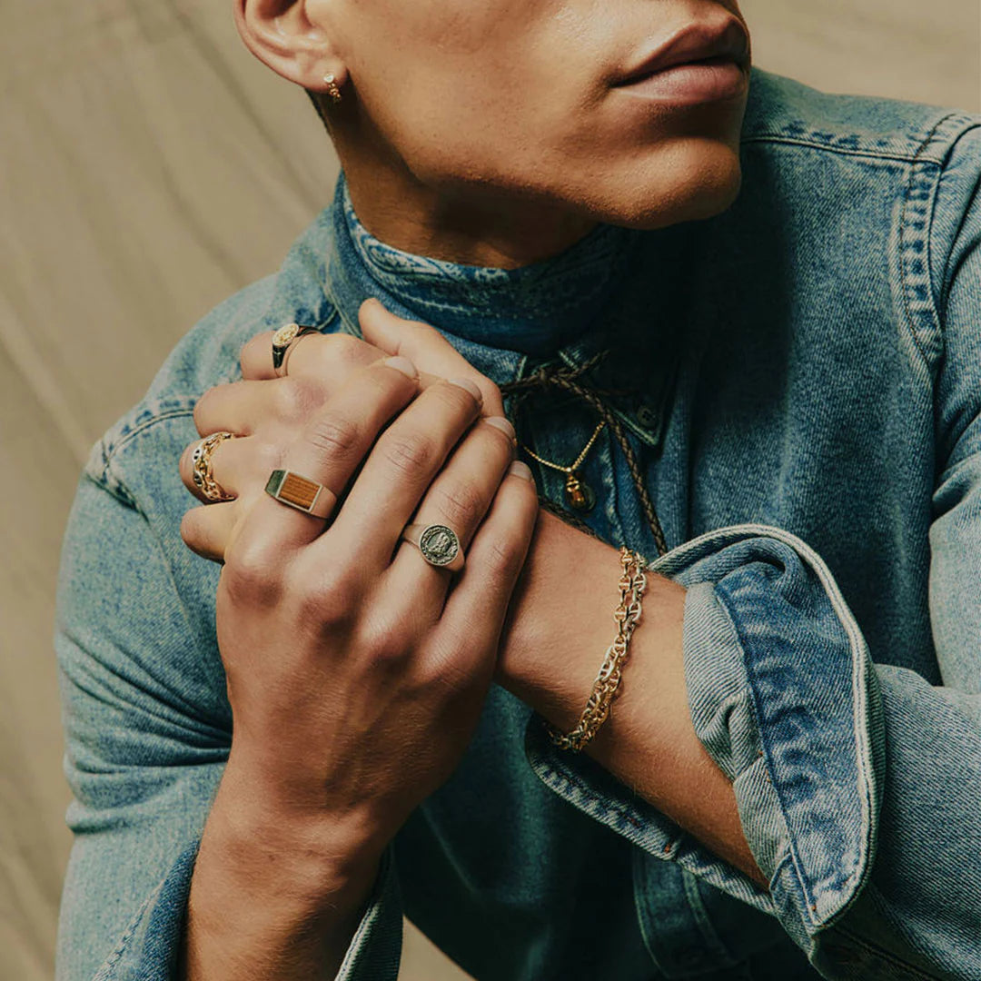 The Silver Dusk Ring is a square-faced signet ring featuring a natural Tigers Eye Stone. The Dusk Ring captures that fleeting moment between day and night, when the sun dips low and everything is bathed in bronze. At its center, a polished Tiger’s Eye stone reflects this balance of light and shadow, mirroring the golden hour of the wild frontier.