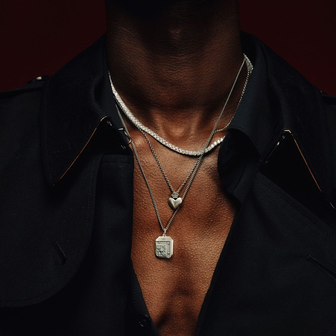 The Mint Necklace is a rectangle shaped pendant with a detailed face and a 4 hallmarks on the back. The necklace is made from 925 Sterling Silver and is hallmarked by is hallmarked by the Goldsmiths Company Assay Office verifying its quality. This ring has also been marked with the limited edition Jubilee Mark, which is only available for this year, 2022.
