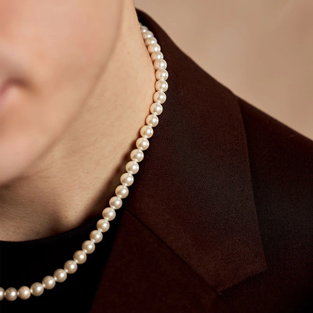 The Pearl Necklace is made from a string of 6mm shell pearls and finished with a Sterling Silver lobster clasp.