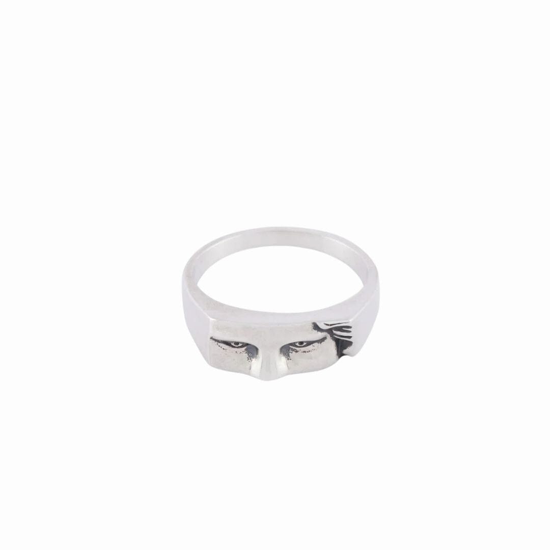 The Silver Zeus Ring features a realistic half design displayed on a rectangle shaped ring. The Zeus Ring is inspired by the Ancient Seven Wonder, the Statue of Zeus. The statue was created in the 5th century BC, made by the infamous Greek sculptor, Phidias. The ring is finished with an oxidised technique to highlight the details, such as the eyes and hair.